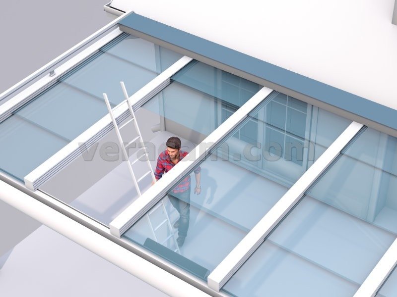 Motorlu mekanizmaya sahip sistem, uzaktan kumanda ile çalışır. Lamine veya temperli cam seçenekleri mevcuttur.